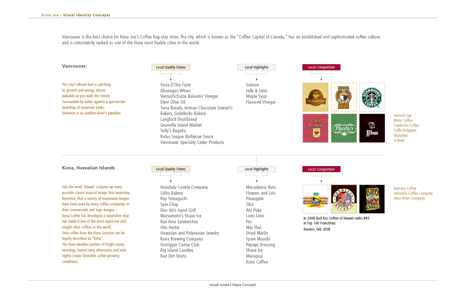 As Sr. Art Director and leading designer on the Branding Strategy of 'Kona Joe Coffee' for InfoGrafik (Honolulu), Harald-M. Lehnardt worked on the preliminary design exploration for the new brand identity and retail environment experience. In addition, he contributed with research, case study and designed the look and feel of the company’s visual identity and branded coffee product line.